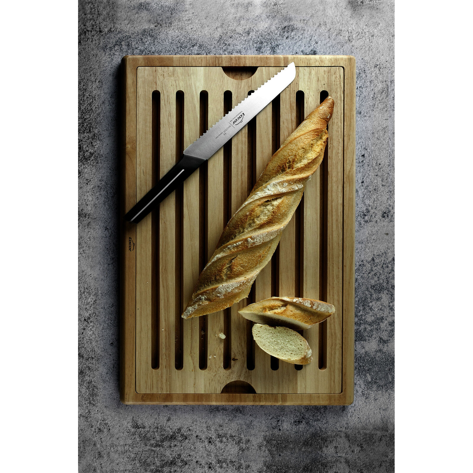 Kautschukholz, 2-tlg., GN 1/1 x 2 cm, geölt, nicht spülmaschinengeeignet. Bestehend aus Holzunterteil und Krümelrost-Auflage, mit 4 rutschfesten Füßen. Lieferung erfolgt ohne Messer.