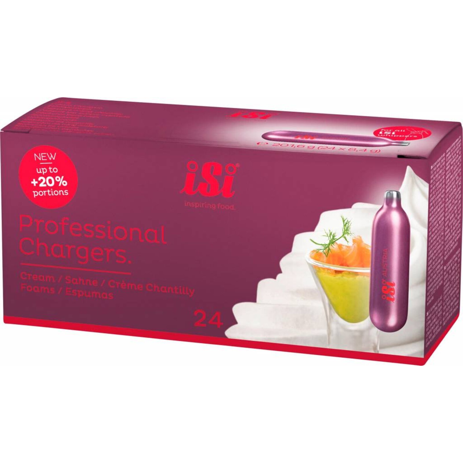 Passend für alle iSi Spender. +20% mehr Portionen. 8,4 g reines Distickstoffoxid. 100% wiederverwertbarer Stahl. Im 24er Pack.