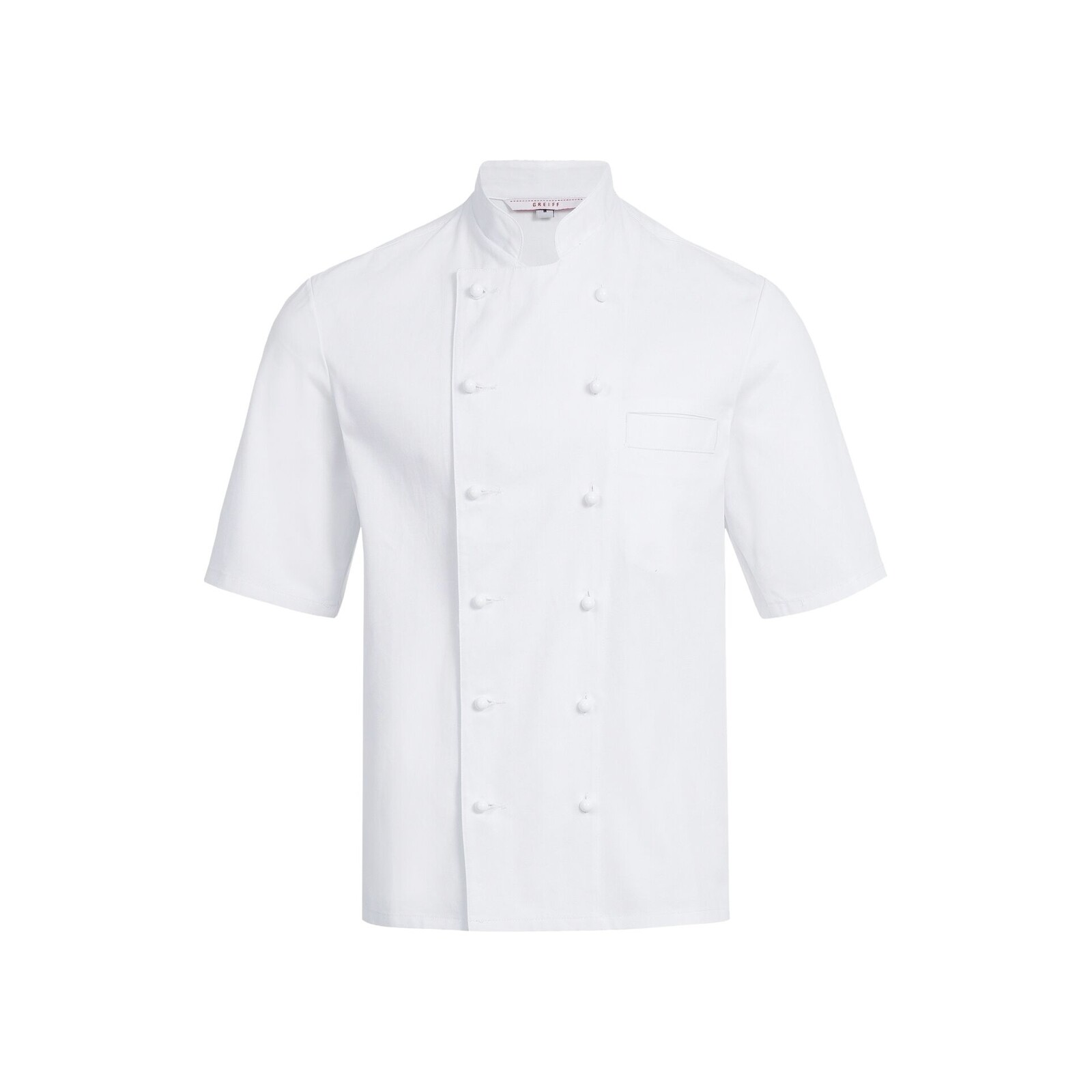 Farbe: weiß. 100% Baumwolle, 230g/m². Regular fit. Brustleistentasche, Lüftungslöcher, Wiener Nähte im Rücken. Waschen: Normalwaschgang 95°C, Bleichen: Chlor- und Sauerstoffbleiche erlaubt,