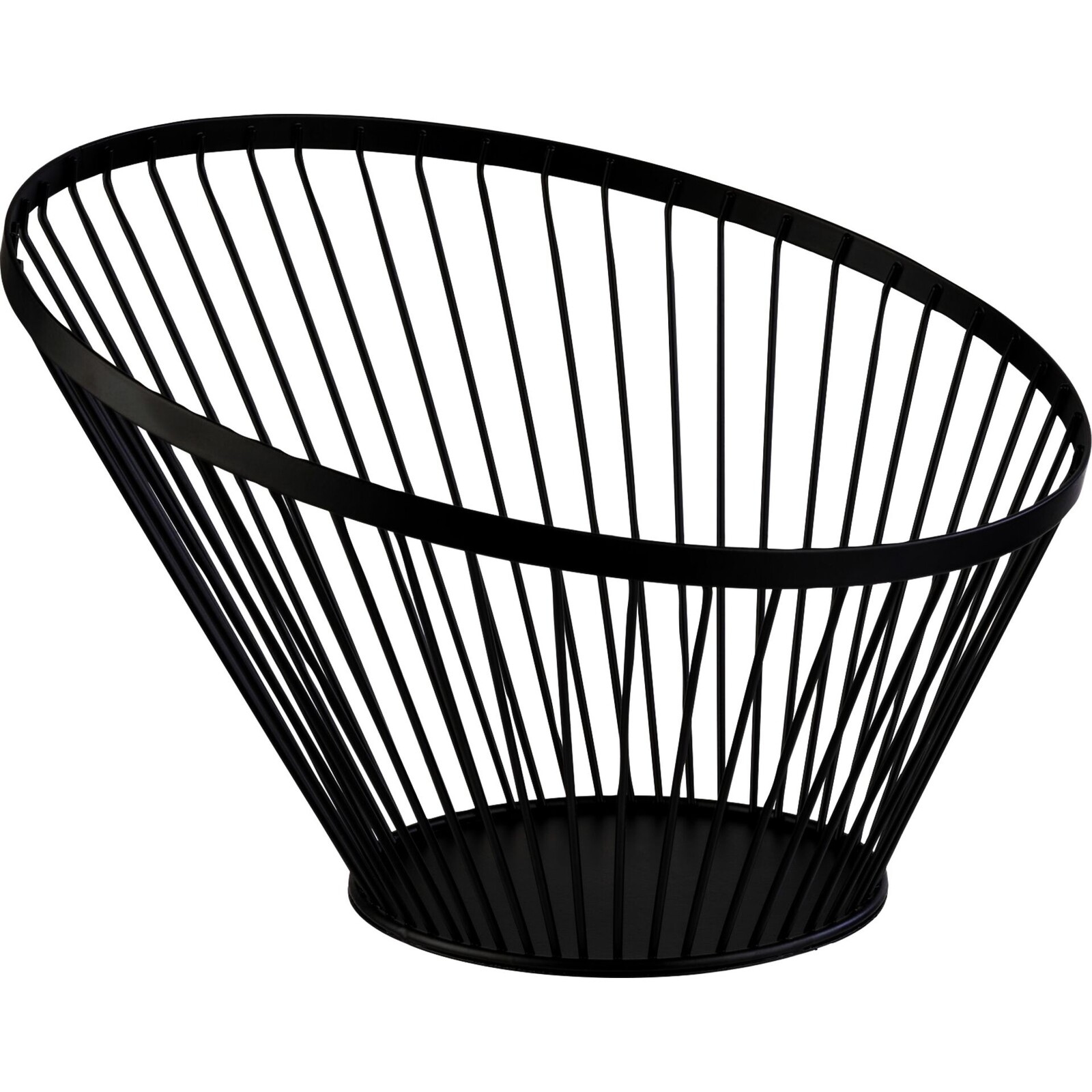 Stahl, schwarz. Mit lebensmittelechter Beschichtung. Ideal für Brot, Obst u. Gemüse. Abgeschrägte Form: Ø oben 30cm, H hinten 20,5cm, H vorne 13cm. Handwäsche empfohlen.