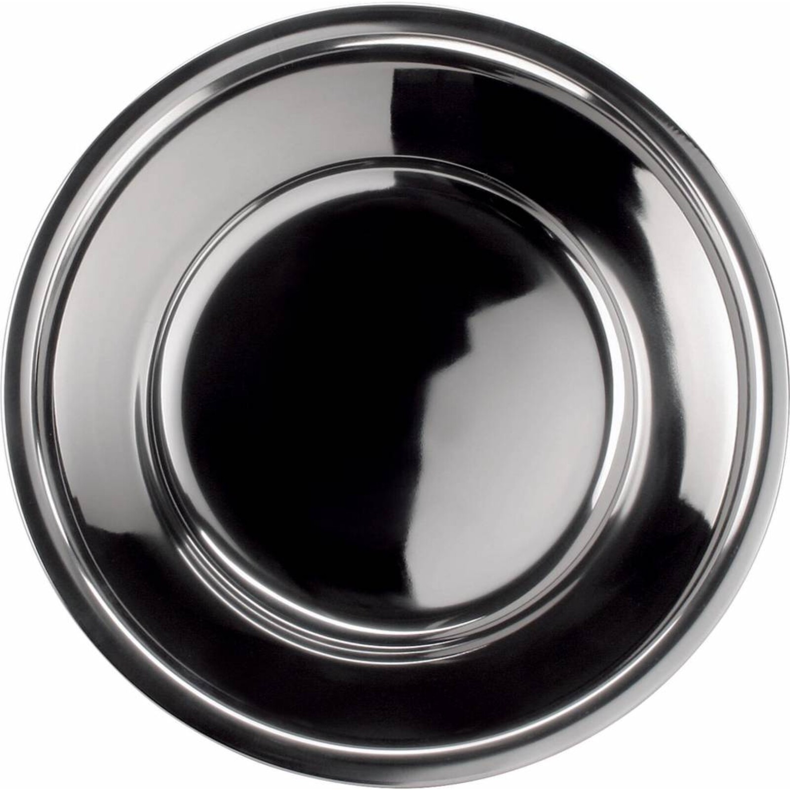 Schüssel aus Chromnickelstahl. Rostfrei. Konische Form, mit bordiertem Rand.