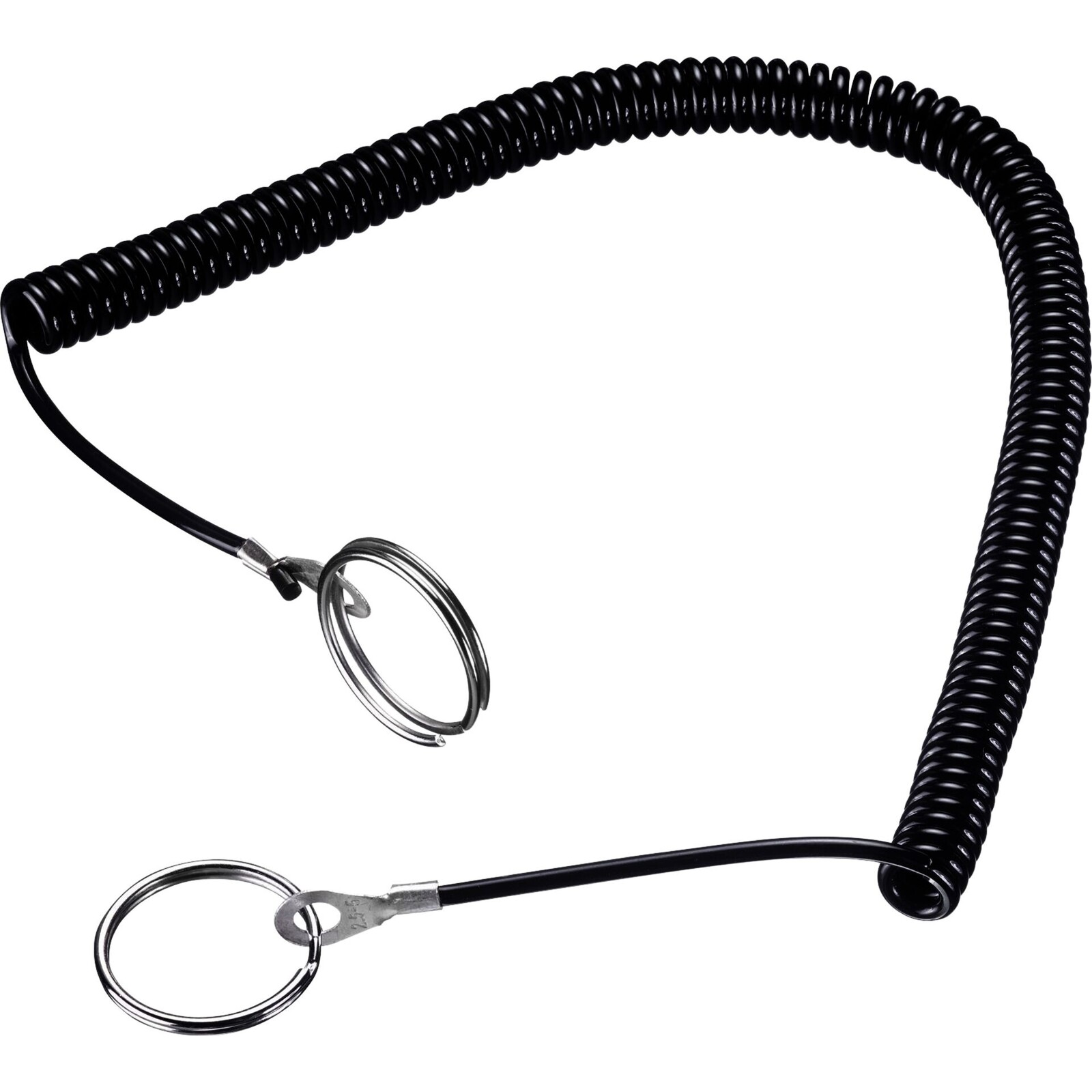 2 Stahlringe Ø 2,5cm, Kette aus thermoplastischem PU, dehnfähig von 25cm bis 200cm. Zum Befestigen von z.B. Servierzangen, Schaufeln usw. Nicht spülmaschinengeeignet.