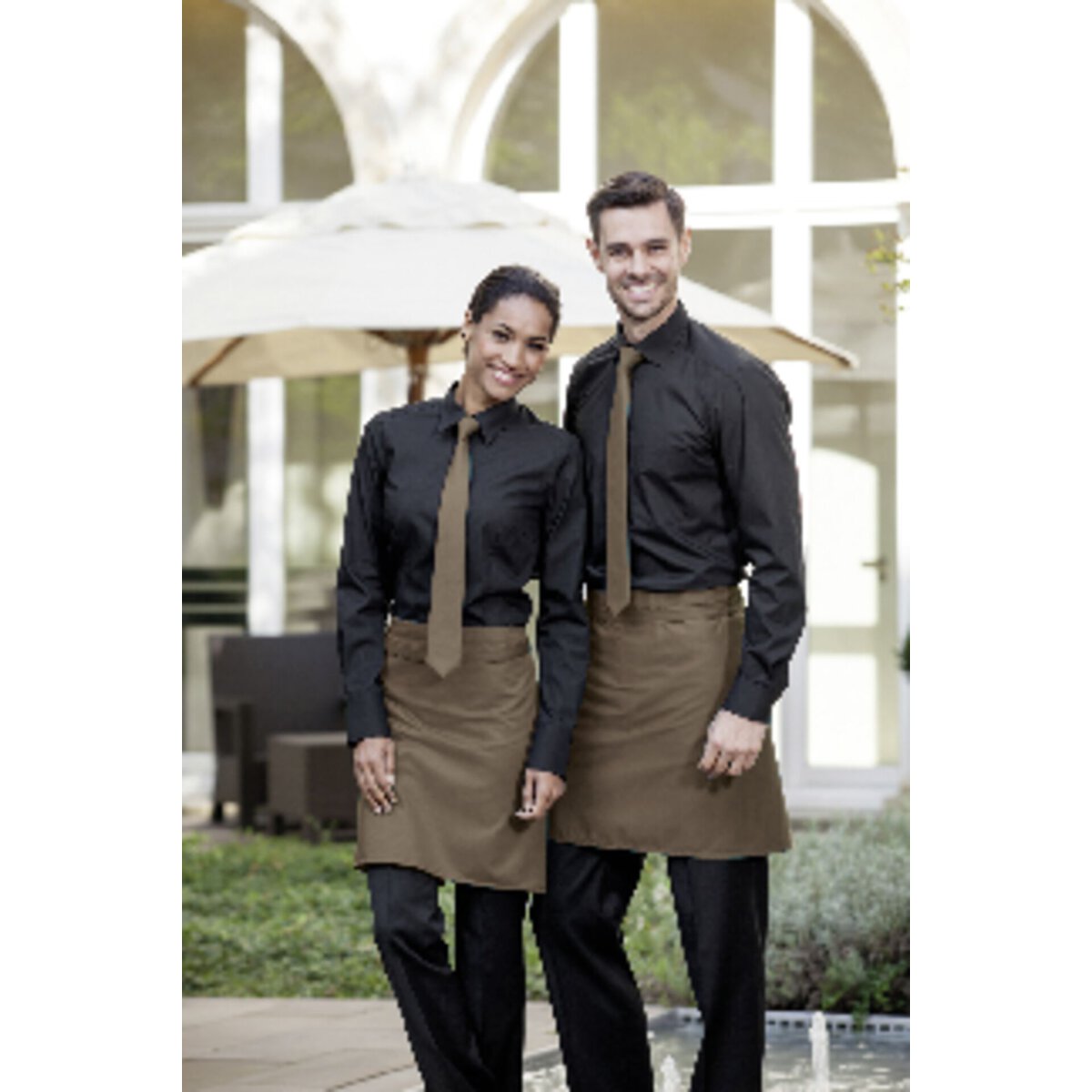 Schürze mit farblich passendem Stoffband in trendigen Farben. Material: 65% Polyester/ 35% Baumwolle, 215g/m². Waschbar bis 95 C°. Abmessungen LxB in cm: 45x90. Die gesamte Baumwolle ist Fairtrade zertifiziert. Somit auch Produktion im Fairtrade auditierten Betrieb.